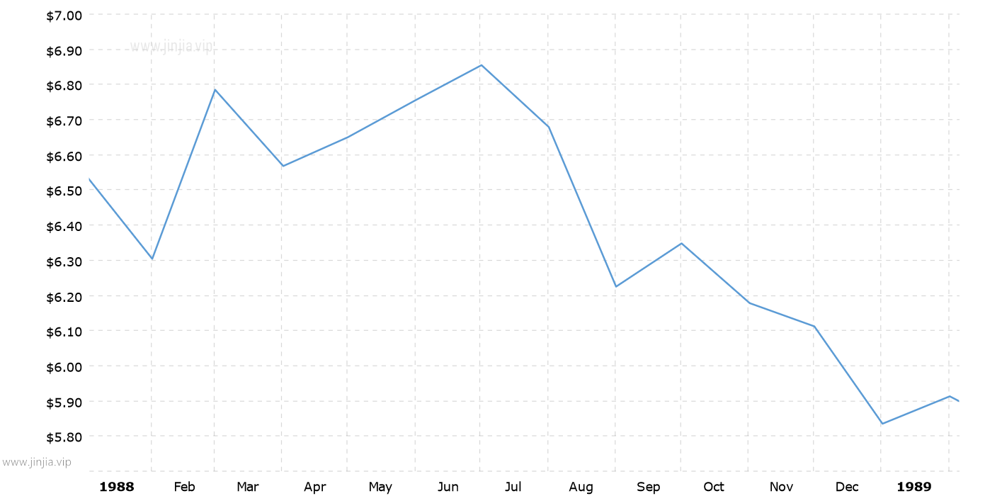 1988年銀價 1988年白銀價格走勢圖 報價單位:美元/盎司 白銀歷年價格查詢 請選取年份 2026年 2025年 2024年 2023年 2022年 2021年 2020年 2019年 2018年 2017年 2016年 2015年 2014年 2013年 2012年 2011年 2010年 2009年 2008年 2007年 2006年 2005年 2004年 2003年 2002年 2001年 2000年 1999年 1998年 1997年 1996年 1995年 1994年 1993年 1992年 1991年 1990年 1989年 1988年 1987年 1986年 1985年 1984年 1983年 1982年 1981年 1980年 1979年 1978年 1977年 1976年 1975年 1974年 1973年 1972年 1971年 1970年 1969年 1968年 1967年 1966年 1965年 1964年 1963年 1962年 1961年 1960年 1959年 1958年 1957年 1956年 1955年 1954年 1953年 1952年 1951年 1950年 1949年 1948年 1947年 1946年 1945年 1944年 1943年 1942年 1941年 1940年 1939年 1938年 1937年 1936年 1935年 1934年 1933年 1932年 1931年 1930年 1929年 1928年 1927年 1926年 1925年 1924年 1923年 1922年 1921年 1920年 1919年 1918年 1917年 1916年 1915年 國際白銀歷史價格走勢圖 半年 1年 10年 20年 30年 50年 1988年銀價查詢說明 1988年(民國77年)銀價走勢圖的數據來自英國倫敦黃金交易市場(Gold Market,International Gold Market)白銀的歷史價格,以美元每盎司計價,本站查詢對使用該1988白銀價格歷史圖和數據表導致的結果概不承擔任何責任。1988年金價 民國77年銀價相關數據參考 倫敦金 紐約金 上海金 歷年金價 歷年銀價 歷年鉑價 歷年鈀價 換算 銀價 鉑價 鈀價