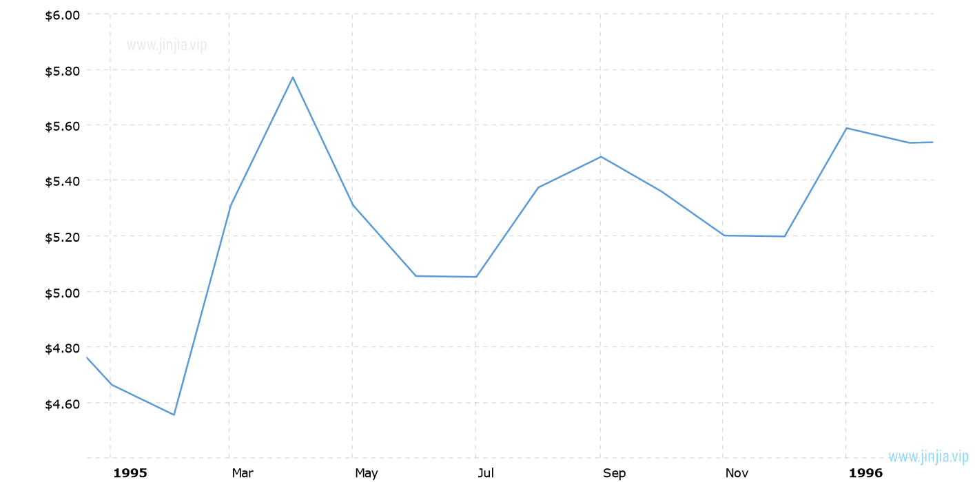 1995年銀價 1995年白銀價格走勢圖 報價單位:美元/盎司 白銀歷年價格查詢 請選取年份 2026年 2025年 2024年 2023年 2022年 2021年 2020年 2019年 2018年 2017年 2016年 2015年 2014年 2013年 2012年 2011年 2010年 2009年 2008年 2007年 2006年 2005年 2004年 2003年 2002年 2001年 2000年 1999年 1998年 1997年 1996年 1995年 1994年 1993年 1992年 1991年 1990年 1989年 1988年 1987年 1986年 1985年 1984年 1983年 1982年 1981年 1980年 1979年 1978年 1977年 1976年 1975年 1974年 1973年 1972年 1971年 1970年 1969年 1968年 1967年 1966年 1965年 1964年 1963年 1962年 1961年 1960年 1959年 1958年 1957年 1956年 1955年 1954年 1953年 1952年 1951年 1950年 1949年 1948年 1947年 1946年 1945年 1944年 1943年 1942年 1941年 1940年 1939年 1938年 1937年 1936年 1935年 1934年 1933年 1932年 1931年 1930年 1929年 1928年 1927年 1926年 1925年 1924年 1923年 1922年 1921年 1920年 1919年 1918年 1917年 1916年 1915年 國際白銀歷史價格走勢圖 半年 1年 10年 20年 30年 50年 1995年銀價查詢說明 1995年(民國84年)銀價走勢圖的數據來自英國倫敦黃金交易市場(Gold Market,International Gold Market)白銀的歷史價格,以美元每盎司計價,本站查詢對使用該1995白銀價格歷史圖和數據表導致的結果概不承擔任何責任。1995年金價 民國84年銀價相關數據參考 倫敦金 紐約金 上海金 歷年金價 歷年銀價 歷年鉑價 歷年鈀價 換算 銀價 鉑價 鈀價