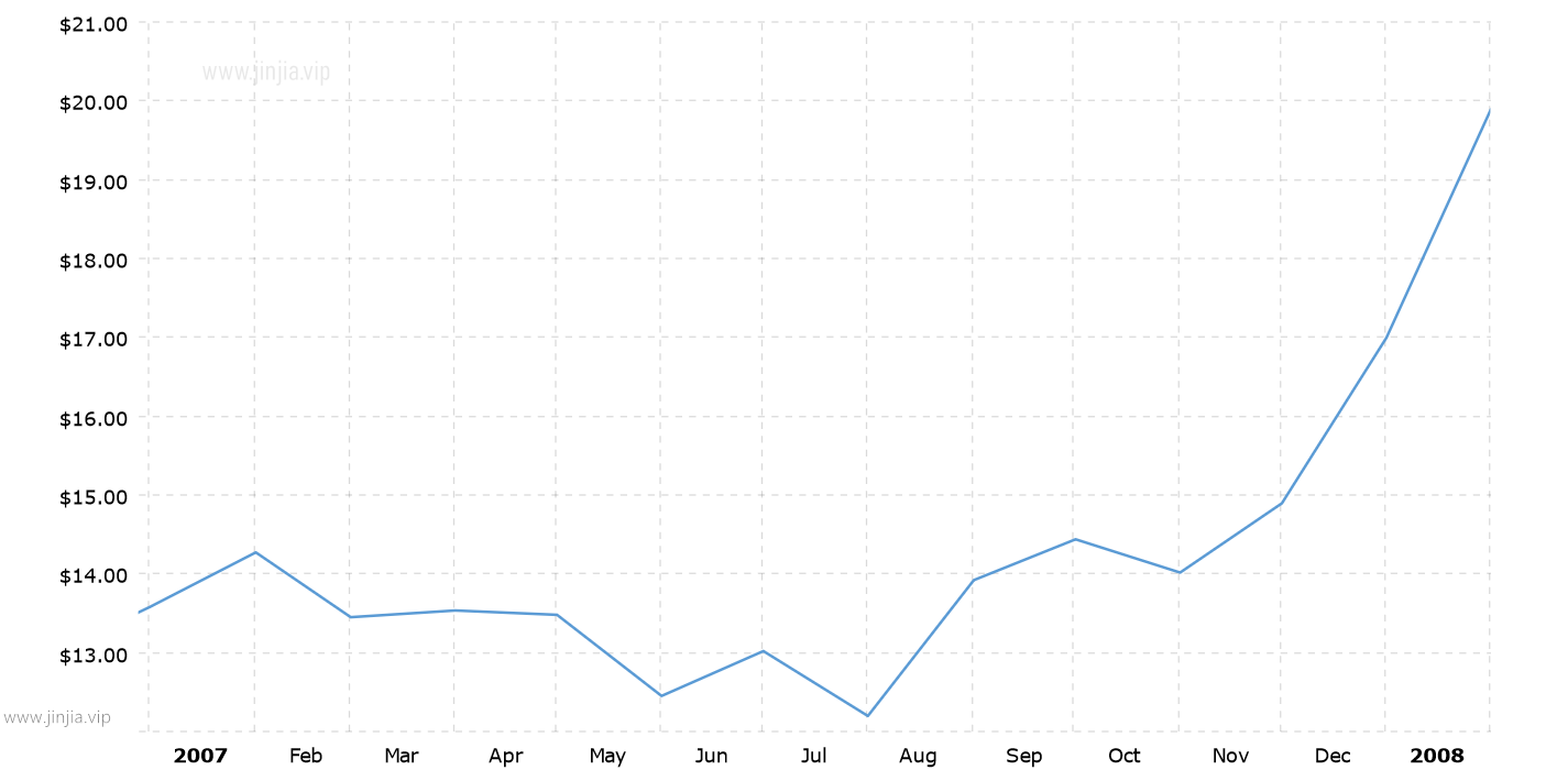 2007年銀價 2007年白銀價格走勢圖 報價單位:美元/盎司 白銀歷年價格查詢 請選取年份 2026年 2025年 2024年 2023年 2022年 2021年 2020年 2019年 2018年 2017年 2016年 2015年 2014年 2013年 2012年 2011年 2010年 2009年 2008年 2007年 2006年 2005年 2004年 2003年 2002年 2001年 2000年 1999年 1998年 1997年 1996年 1995年 1994年 1993年 1992年 1991年 1990年 1989年 1988年 1987年 1986年 1985年 1984年 1983年 1982年 1981年 1980年 1979年 1978年 1977年 1976年 1975年 1974年 1973年 1972年 1971年 1970年 1969年 1968年 1967年 1966年 1965年 1964年 1963年 1962年 1961年 1960年 1959年 1958年 1957年 1956年 1955年 1954年 1953年 1952年 1951年 1950年 1949年 1948年 1947年 1946年 1945年 1944年 1943年 1942年 1941年 1940年 1939年 1938年 1937年 1936年 1935年 1934年 1933年 1932年 1931年 1930年 1929年 1928年 1927年 1926年 1925年 1924年 1923年 1922年 1921年 1920年 1919年 1918年 1917年 1916年 1915年 國際白銀歷史價格走勢圖 半年 1年 10年 20年 30年 50年 2007年銀價查詢說明 2007年(民國96年)銀價走勢圖的數據來自英國倫敦黃金交易市場(Gold Market,International Gold Market)白銀的歷史價格,以美元每盎司計價,本站查詢對使用該2007白銀價格歷史圖和數據表導致的結果概不承擔任何責任。2007年金價 民國96年銀價相關數據參考 倫敦金 紐約金 上海金 歷年金價 歷年銀價 歷年鉑價 歷年鈀價 換算 銀價 鉑價 鈀價