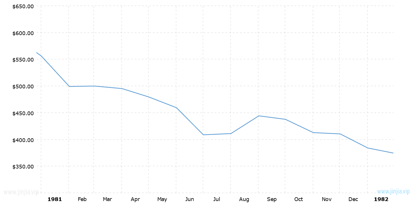 1981年金價 1981年黃金價格走勢圖 報價單位:美元/盎司 黃金歷年價格查詢 請選取年份 2026年 2025年 2024年 2023年 2022年 2021年 2020年 2019年 2018年 2017年 2016年 2015年 2014年 2013年 2012年 2011年 2010年 2009年 2008年 2007年 2006年 2005年 2004年 2003年 2002年 2001年 2000年 1999年 1998年 1997年 1996年 1995年 1994年 1993年 1992年 1991年 1990年 1989年 1988年 1987年 1986年 1985年 1984年 1983年 1982年 1981年 1980年 1979年 1978年 1977年 1976年 1975年 1974年 1973年 1972年 1971年 1970年 1969年 1968年 1967年 1966年 1965年 1964年 1963年 1962年 1961年 1960年 1959年 1958年 1957年 1956年 1955年 1954年 1953年 1952年 1951年 1950年 1949年 1948年 1947年 1946年 1945年 1944年 1943年 1942年 1941年 1940年 1939年 1938年 1937年 1936年 1935年 1934年 1933年 1932年 1931年 1930年 1929年 1928年 1927年 1926年 1925年 1924年 1923年 1922年 1921年 1920年 1919年 1918年 1917年 1916年 1915年 國際黃金歷史價格走勢圖 半年 1年 10年 20年 30年 50年 1981年金價查詢說明 1981年(民國70年)金價走勢圖的數據來自英國倫敦黃金交易市場(Gold Market,International Gold Market)的現貨歷史金價,以美元每盎司計價,本站查詢對使用該1981黃金價格歷史圖和數據表導致的結果概不承擔任何責任。 民國70年金價相關數據參考 倫敦金 紐約金 上海金 歷年金價 歷年銀價 歷年鉑價 歷年鈀價 換算 銀價 鉑價 鈀價