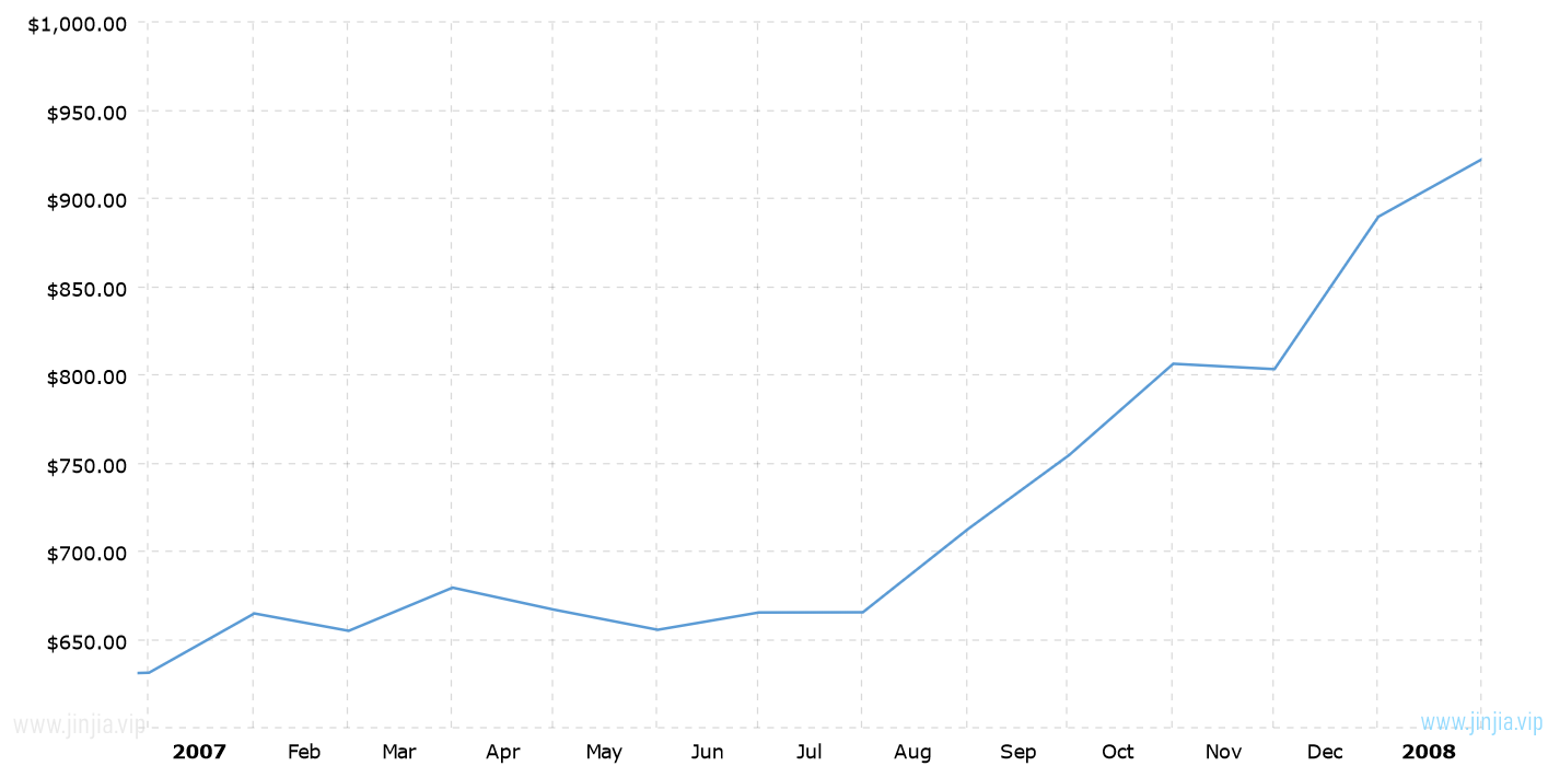 2007年金價 2007年黃金價格走勢圖 報價單位:美元/盎司 黃金歷年價格查詢 請選取年份 2026年 2025年 2024年 2023年 2022年 2021年 2020年 2019年 2018年 2017年 2016年 2015年 2014年 2013年 2012年 2011年 2010年 2009年 2008年 2007年 2006年 2005年 2004年 2003年 2002年 2001年 2000年 1999年 1998年 1997年 1996年 1995年 1994年 1993年 1992年 1991年 1990年 1989年 1988年 1987年 1986年 1985年 1984年 1983年 1982年 1981年 1980年 1979年 1978年 1977年 1976年 1975年 1974年 1973年 1972年 1971年 1970年 1969年 1968年 1967年 1966年 1965年 1964年 1963年 1962年 1961年 1960年 1959年 1958年 1957年 1956年 1955年 1954年 1953年 1952年 1951年 1950年 1949年 1948年 1947年 1946年 1945年 1944年 1943年 1942年 1941年 1940年 1939年 1938年 1937年 1936年 1935年 1934年 1933年 1932年 1931年 1930年 1929年 1928年 1927年 1926年 1925年 1924年 1923年 1922年 1921年 1920年 1919年 1918年 1917年 1916年 1915年 國際黃金歷史價格走勢圖 半年 1年 10年 20年 30年 50年 2007年金價查詢說明 2007年(民國96年)金價走勢圖的數據來自英國倫敦黃金交易市場(Gold Market,International Gold Market)的現貨歷史金價,以美元每盎司計價,本站查詢對使用該2007黃金價格歷史圖和數據表導致的結果概不承擔任何責任。 民國96年金價相關數據參考 倫敦金 紐約金 上海金 歷年金價 歷年銀價 歷年鉑價 歷年鈀價 換算 銀價 鉑價 鈀價