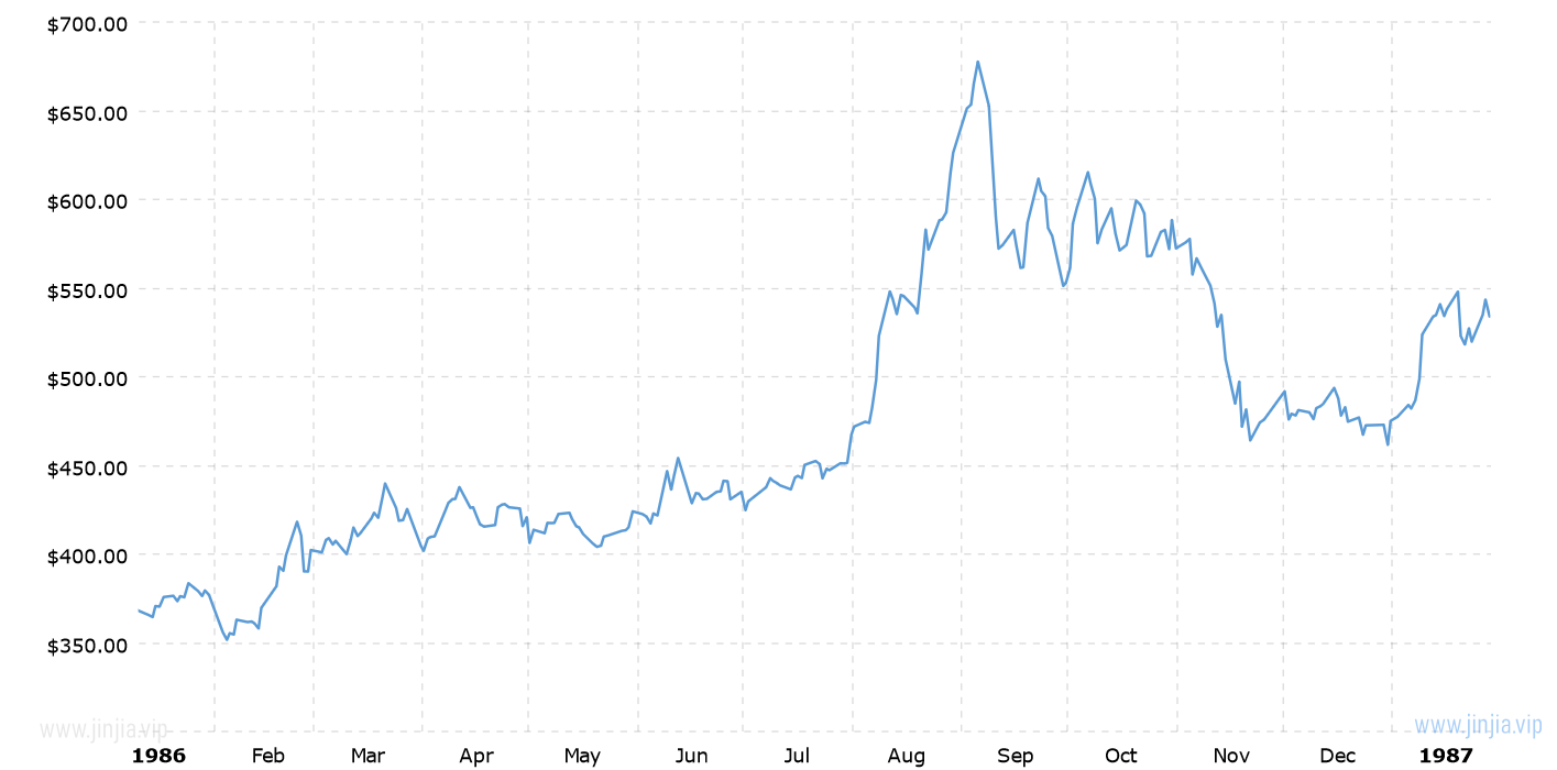 1986年鉑金價格 1986年鉑價走勢圖 報價單位:美元/盎司 鉑金歷年價格查詢 請選取報價年份 2025年 2024年 2023年 2022年 2021年 2020年 2019年 2018年 2017年 2016年 2015年 2014年 2013年 2012年 2011年 2010年 2009年 2008年 2007年 2006年 2005年 2004年 2003年 2002年 2001年 2000年 1999年 1998年 1997年 1996年 1995年 1994年 1993年 1992年 1991年 1990年 1989年 1988年 1987年 1986年 1985年 1984年 1983年 1982年 1981年 1980年 1979年 1978年 1977年 1976年 1975年 1974年 1973年 1972年 1971年 1970年 1969年 國際鉑金歷史價格走勢圖 半年 1年 10年 20年 30年 50年 1986年鉑價格查詢說明 1986年(民國75年)鉑價走勢圖的數據來自英國倫敦現貨鉑金的歷史價格,以美元每盎司計價,本站查詢對使用該1986鉑金價格歷史圖和數據表導致的結果概不承擔任何責任。1986年金價 1986年銀價 民國75年鉑金價格相關數據參考 倫敦金 紐約金 上海金 歷年金價 歷年銀價 歷年鉑價 歷年鈀價 換算 銀價 鉑價 鈀價