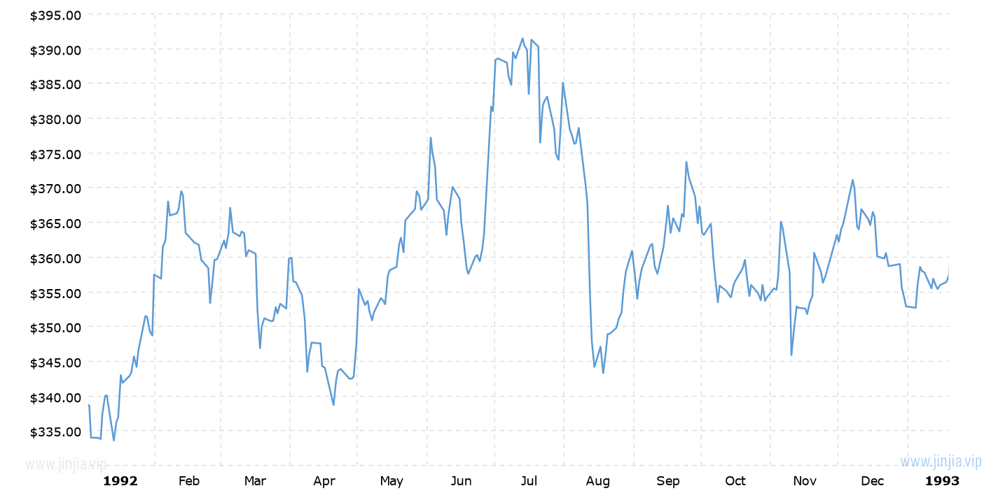 1992年鉑金價格 1992年鉑價走勢圖 報價單位:美元/盎司 鉑金歷年價格查詢 請選取報價年份 2025年 2024年 2023年 2022年 2021年 2020年 2019年 2018年 2017年 2016年 2015年 2014年 2013年 2012年 2011年 2010年 2009年 2008年 2007年 2006年 2005年 2004年 2003年 2002年 2001年 2000年 1999年 1998年 1997年 1996年 1995年 1994年 1993年 1992年 1991年 1990年 1989年 1988年 1987年 1986年 1985年 1984年 1983年 1982年 1981年 1980年 1979年 1978年 1977年 1976年 1975年 1974年 1973年 1972年 1971年 1970年 1969年 國際鉑金歷史價格走勢圖 半年 1年 10年 20年 30年 50年 1992年鉑價格查詢說明 1992年(民國81年)鉑價走勢圖的數據來自英國倫敦現貨鉑金的歷史價格,以美元每盎司計價,本站查詢對使用該1992鉑金價格歷史圖和數據表導致的結果概不承擔任何責任。1992年金價 1992年銀價 民國81年鉑金價格相關數據參考 倫敦金 紐約金 上海金 歷年金價 歷年銀價 歷年鉑價 歷年鈀價 換算 銀價 鉑價 鈀價