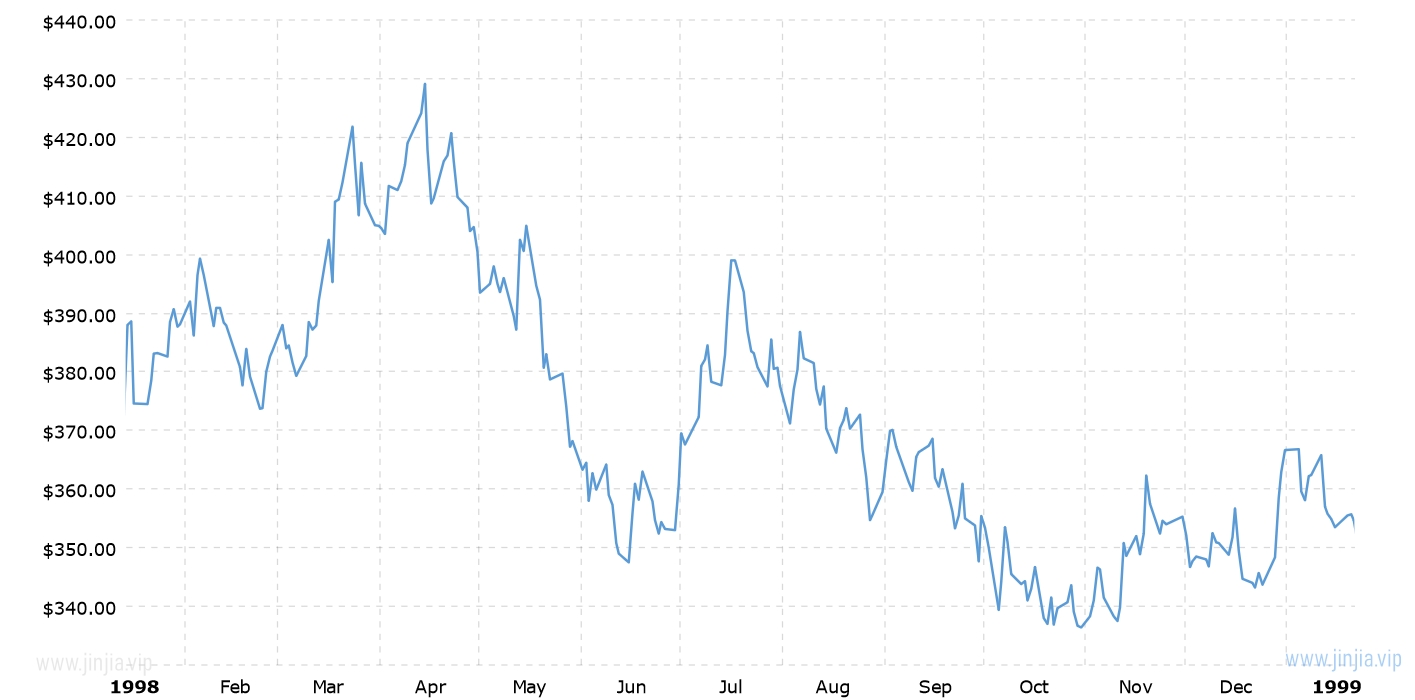 1998年鉑金價格 1998年鉑價走勢圖 報價單位:美元/盎司 鉑金歷年價格查詢 請選取報價年份 2025年 2024年 2023年 2022年 2021年 2020年 2019年 2018年 2017年 2016年 2015年 2014年 2013年 2012年 2011年 2010年 2009年 2008年 2007年 2006年 2005年 2004年 2003年 2002年 2001年 2000年 1999年 1998年 1997年 1996年 1995年 1994年 1993年 1992年 1991年 1990年 1989年 1988年 1987年 1986年 1985年 1984年 1983年 1982年 1981年 1980年 1979年 1978年 1977年 1976年 1975年 1974年 1973年 1972年 1971年 1970年 1969年 國際鉑金歷史價格走勢圖 半年 1年 10年 20年 30年 50年 1998年鉑價格查詢說明 1998年(民國87年)鉑價走勢圖的數據來自英國倫敦現貨鉑金的歷史價格,以美元每盎司計價,本站查詢對使用該1998鉑金價格歷史圖和數據表導致的結果概不承擔任何責任。1998年金價 1998年銀價 民國87年鉑金價格相關數據參考 倫敦金 紐約金 上海金 歷年金價 歷年銀價 歷年鉑價 歷年鈀價 換算 銀價 銅價 鉑價 鈀價