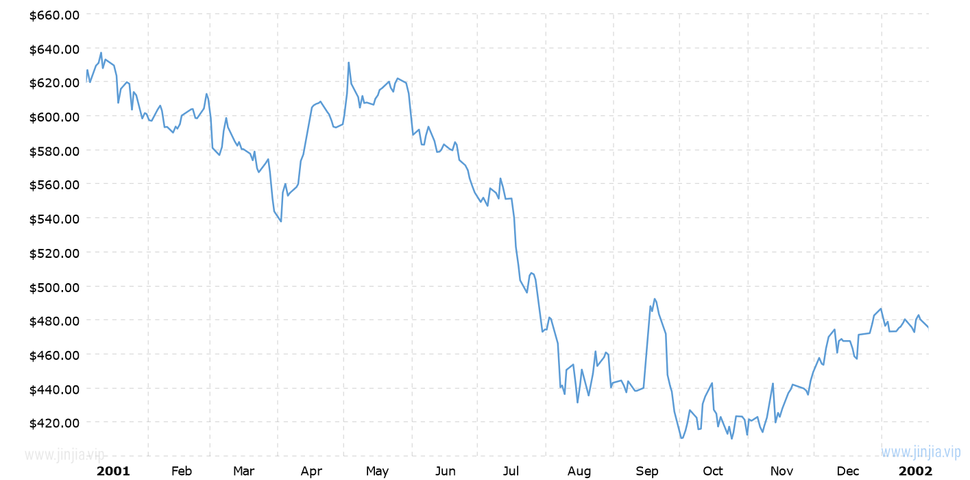 2001年鉑金價格 2001年鉑價走勢圖 報價單位:美元/盎司 鉑金歷年價格查詢 請選取報價年份 2025年 2024年 2023年 2022年 2021年 2020年 2019年 2018年 2017年 2016年 2015年 2014年 2013年 2012年 2011年 2010年 2009年 2008年 2007年 2006年 2005年 2004年 2003年 2002年 2001年 2000年 1999年 1998年 1997年 1996年 1995年 1994年 1993年 1992年 1991年 1990年 1989年 1988年 1987年 1986年 1985年 1984年 1983年 1982年 1981年 1980年 1979年 1978年 1977年 1976年 1975年 1974年 1973年 1972年 1971年 1970年 1969年 國際鉑金歷史價格走勢圖 半年 1年 10年 20年 30年 50年 2001年鉑價格查詢說明 2001年(民國90年)鉑價走勢圖的數據來自英國倫敦現貨鉑金的歷史價格,以美元每盎司計價,本站查詢對使用該2001鉑金價格歷史圖和數據表導致的結果概不承擔任何責任。2001年金價 2001年銀價 民國90年鉑金價格相關數據參考 倫敦金 紐約金 上海金 歷年金價 歷年銀價 歷年鉑價 歷年鈀價 換算 銀價 鉑價 鈀價