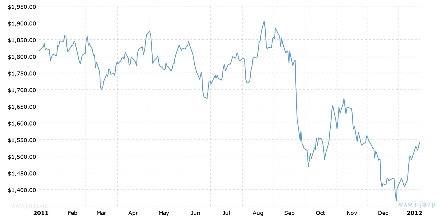 2011年鉑金價格 2011年鉑價走勢圖 報價單位:美元/盎司 鉑金歷年價格查詢 請選取報價年份 2025年 2024年 2023年 2022年 2021年 2020年 2019年 2018年 2017年 2016年 2015年 2014年 2013年 2012年 2011年 2010年 2009年 2008年 2007年 2006年 2005年 2004年 2003年 2002年 2001年 2000年 1999年 1998年 1997年 1996年 1995年 1994年 1993年 1992年 1991年 1990年 1989年 1988年 1987年 1986年 1985年 1984年 1983年 1982年 1981年 1980年 1979年 1978年 1977年 1976年 1975年 1974年 1973年 1972年 1971年 1970年 1969年 國際鉑金歷史價格走勢圖 半年 1年 10年 20年 30年 50年 2011年鉑價格查詢說明 2011年(民國100年)鉑價走勢圖的數據來自英國倫敦現貨鉑金的歷史價格,以美元每盎司計價,本站查詢對使用該2011鉑金價格歷史圖和數據表導致的結果概不承擔任何責任。2011年金價 2011年銀價 民國100年鉑金價格相關數據參考 倫敦金 紐約金 上海金 歷年金價 歷年銀價 歷年鉑價 歷年鈀價 換算 銀價 鉑價 鈀價