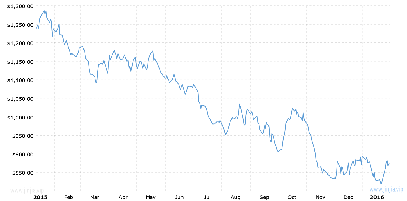 2015年鉑金價格 2015年鉑價走勢圖 報價單位:美元/盎司 鉑金歷年價格查詢 請選取報價年份 2025年 2024年 2023年 2022年 2021年 2020年 2019年 2018年 2017年 2016年 2015年 2014年 2013年 2012年 2011年 2010年 2009年 2008年 2007年 2006年 2005年 2004年 2003年 2002年 2001年 2000年 1999年 1998年 1997年 1996年 1995年 1994年 1993年 1992年 1991年 1990年 1989年 1988年 1987年 1986年 1985年 1984年 1983年 1982年 1981年 1980年 1979年 1978年 1977年 1976年 1975年 1974年 1973年 1972年 1971年 1970年 1969年 國際鉑金歷史價格走勢圖 半年 1年 10年 20年 30年 50年 2015年鉑價格查詢說明 2015年(民國104年)鉑價走勢圖的數據來自英國倫敦現貨鉑金的歷史價格,以美元每盎司計價,本站查詢對使用該2015鉑金價格歷史圖和數據表導致的結果概不承擔任何責任。2015年金價 2015年銀價 民國104年鉑金價格相關數據參考 倫敦金 紐約金 上海金 歷年金價 歷年銀價 歷年鉑價 歷年鈀價 換算 銀價 鉑價 鈀價
