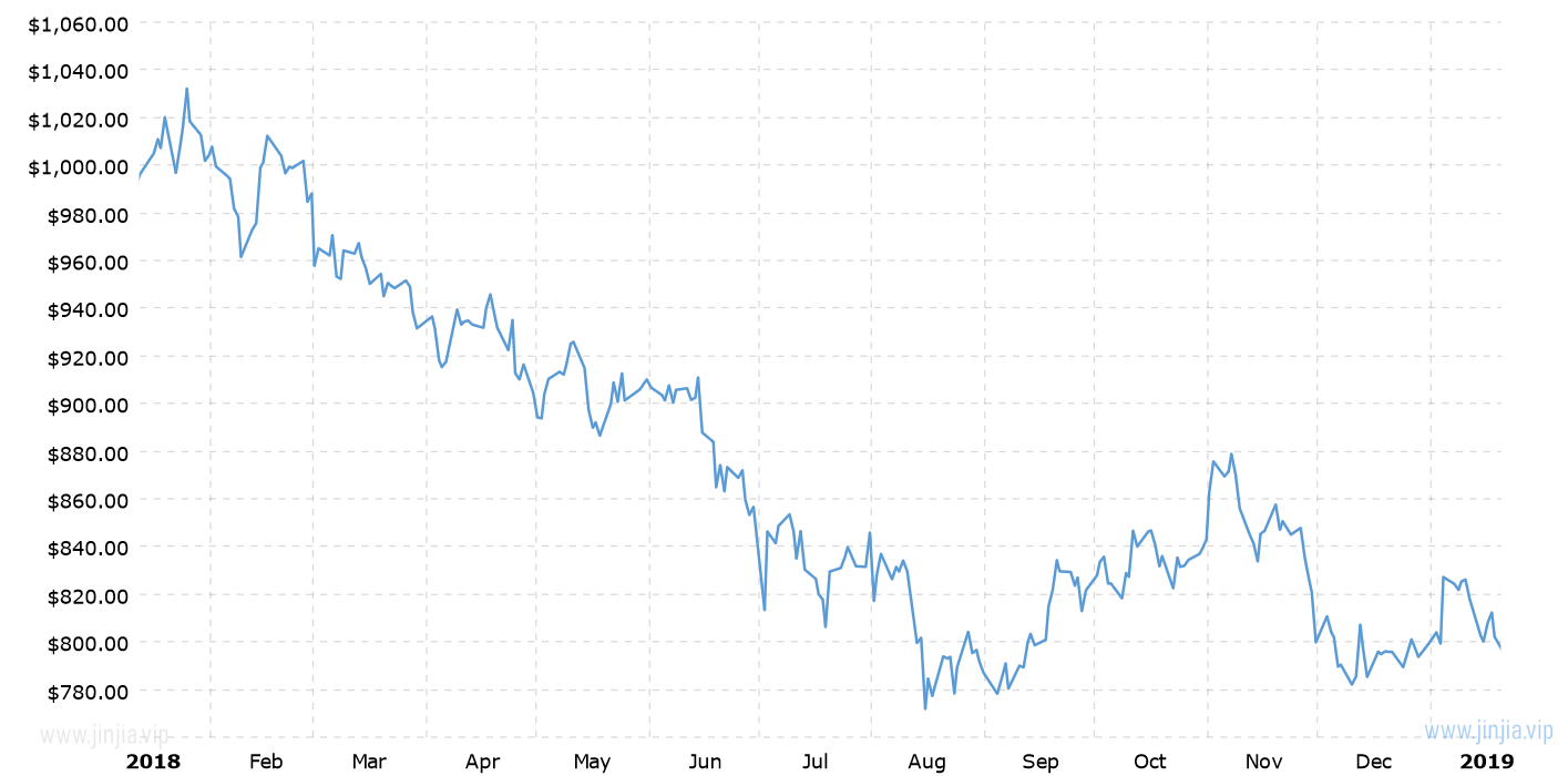 2018年鉑金價格 2018年鉑價走勢圖 報價單位:美元/盎司 鉑金歷年價格查詢 請選取報價年份 2025年 2024年 2023年 2022年 2021年 2020年 2019年 2018年 2017年 2016年 2015年 2014年 2013年 2012年 2011年 2010年 2009年 2008年 2007年 2006年 2005年 2004年 2003年 2002年 2001年 2000年 1999年 1998年 1997年 1996年 1995年 1994年 1993年 1992年 1991年 1990年 1989年 1988年 1987年 1986年 1985年 1984年 1983年 1982年 1981年 1980年 1979年 1978年 1977年 1976年 1975年 1974年 1973年 1972年 1971年 1970年 1969年 國際鉑金歷史價格走勢圖 半年 1年 10年 20年 30年 50年 2018年鉑價格查詢說明 2018年(民國107年)鉑價走勢圖的數據來自英國倫敦現貨鉑金的歷史價格,以美元每盎司計價,本站查詢對使用該2018鉑金價格歷史圖和數據表導致的結果概不承擔任何責任。2018年金價 2018年銀價 民國107年鉑金價格相關數據參考 倫敦金 紐約金 上海金 歷年金價 歷年銀價 歷年鉑價 歷年鈀價 布蘭特原油 換算 銀價 鉑價 鈀價