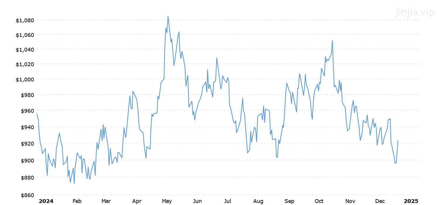 2024年鉑金價格 2024年鉑價走勢圖 報價單位:美元/盎司 鉑金歷年價格查詢 請選取報價年份 2025年 2024年 2023年 2022年 2021年 2020年 2019年 2018年 2017年 2016年 2015年 2014年 2013年 2012年 2011年 2010年 2009年 2008年 2007年 2006年 2005年 2004年 2003年 2002年 2001年 2000年 1999年 1998年 1997年 1996年 1995年 1994年 1993年 1992年 1991年 1990年 1989年 1988年 1987年 1986年 1985年 1984年 1983年 1982年 1981年 1980年 1979年 1978年 1977年 1976年 1975年 1974年 1973年 1972年 1971年 1970年 1969年 國際鉑金歷史價格走勢圖 半年 1年 10年 20年 30年 50年 2024年鉑價格查詢說明 2024年(民國113年)鉑價走勢圖的數據來自英國倫敦現貨鉑金的歷史價格,以美元每盎司計價,本站查詢對使用該2024鉑金價格歷史圖和數據表導致的結果概不承擔任何責任。2024年金價 2024年銀價 民國113年鉑金價格相關數據參考 倫敦金 紐約金 上海金 歷年金價 歷年銀價 歷年鉑價 歷年鈀價 換算 銀價 鉑價 鈀價